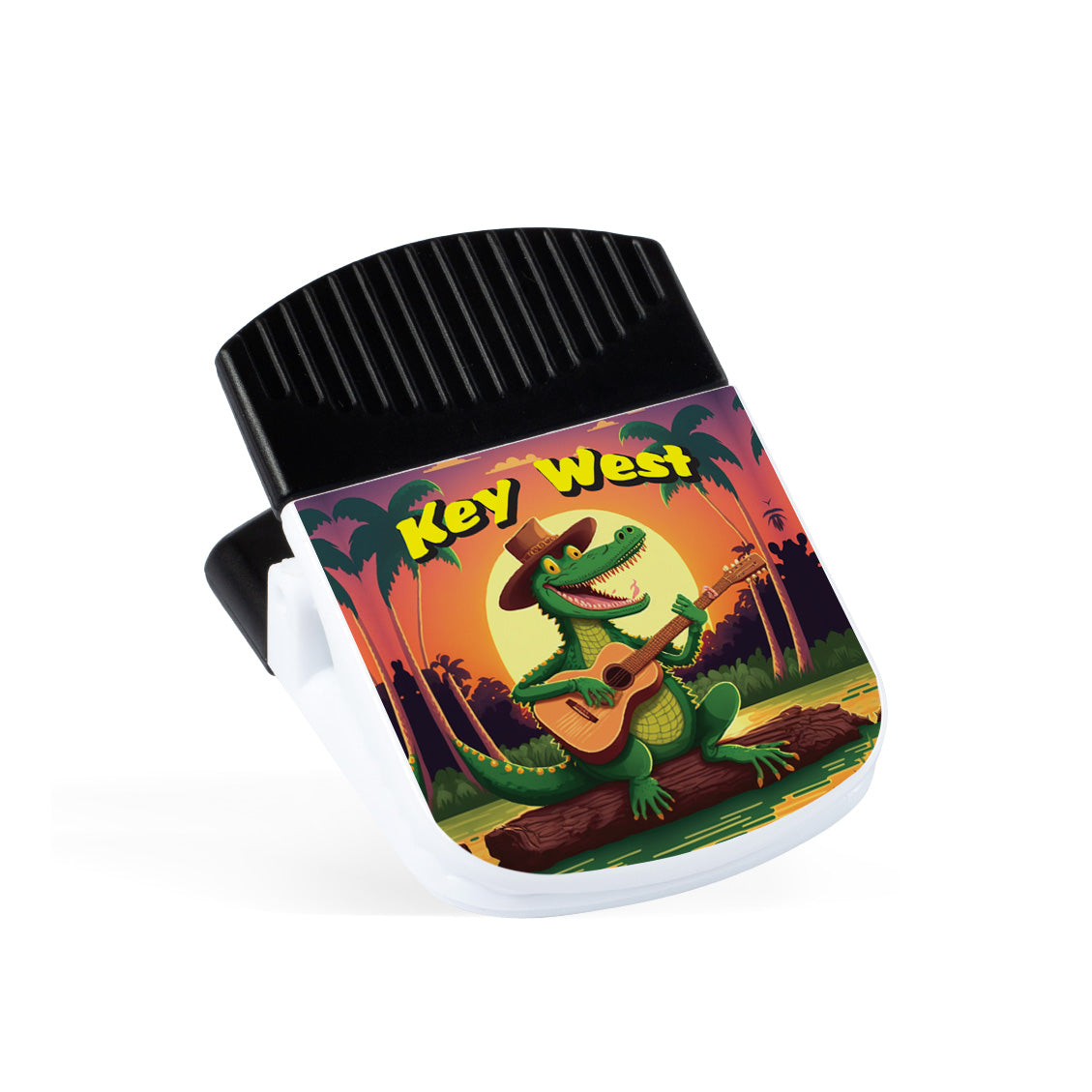 The magnetic clip is perfect as a chip or snack bags clip. It features a heavy-duty, spring-loaded hinge and a strong magnet on the back for added versatility. Imprinted, assembled, and packaged in the USA