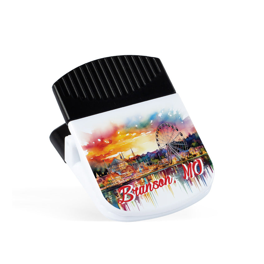 The magnetic clip is perfect as a chip or snack bags clip. It features a heavy-duty, spring-loaded hinge and a strong magnet on the back for added versatility. Imprinted, assembled, and packaged in the USA Product Size: 2L x 1.4W x 2.9H Standard Production Time: 5 business days upon credit approval. MSRP :  $4.89