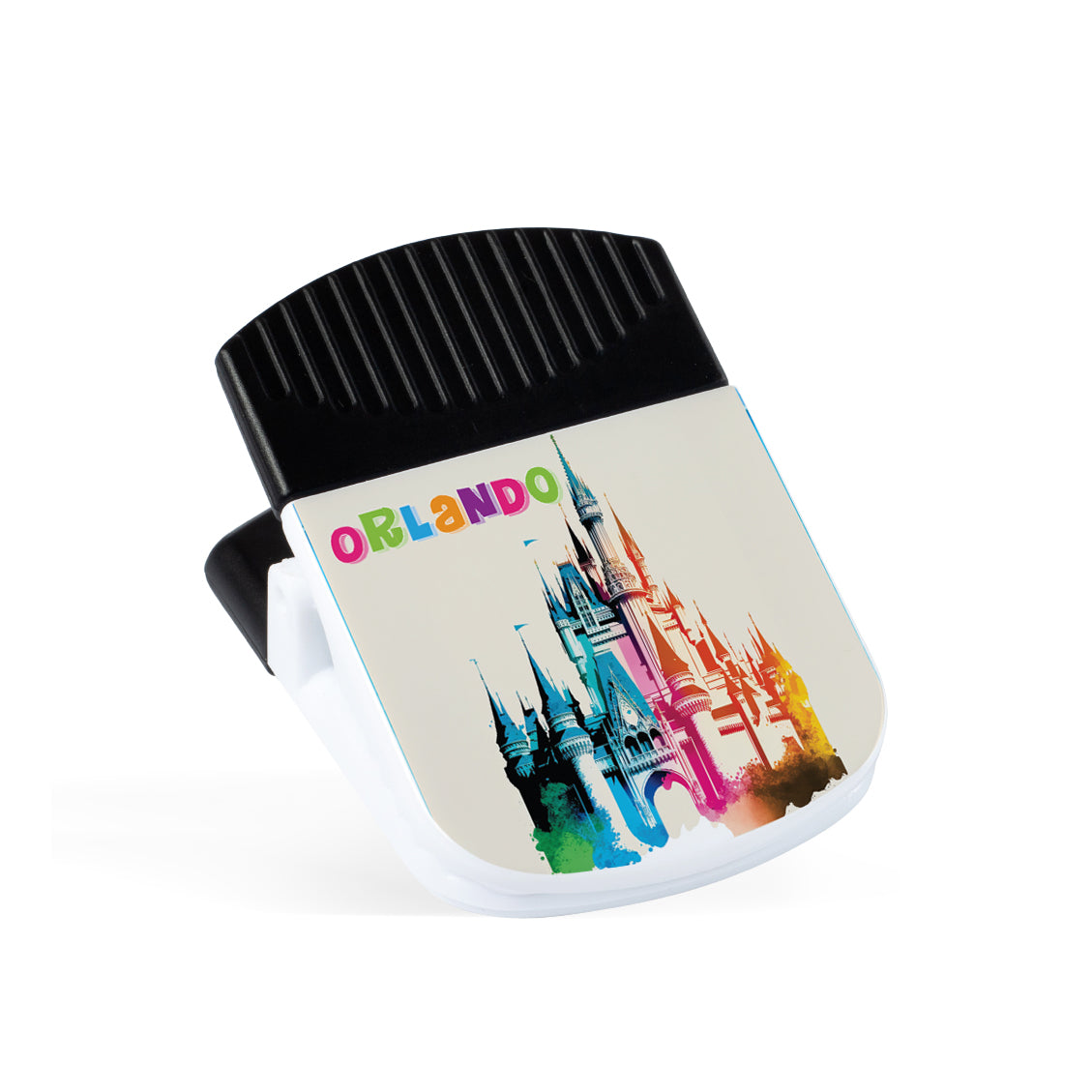The magnetic clip is perfect as a chip or snack bags clip. It features a heavy-duty, spring-loaded hinge and a strong magnet on the back for added versatility. Imprinted, assembled, and packaged in the USA