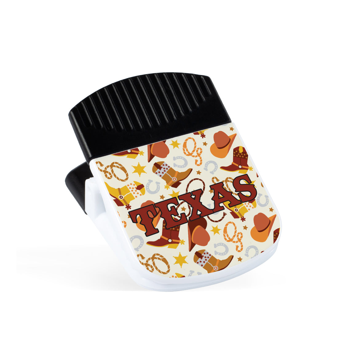 The magnetic clip is perfect as a chip or snack bags clip. It features a heavy-duty, spring-loaded hinge and a strong magnet on the back for added versatility. Imprinted, assembled, and packaged in the USA
