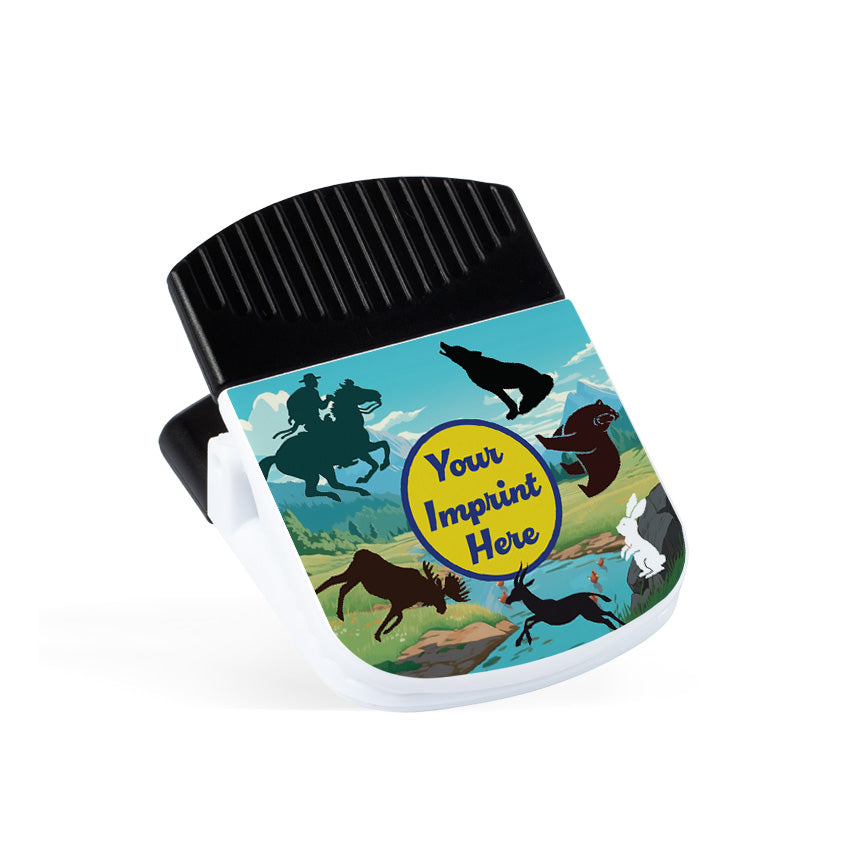 The magnetic clip is perfect as a chip or snack bags clip. It features a heavy-duty, spring-loaded hinge and a strong magnet on the back for added versatility. Imprinted, assembled, and packaged in the USA