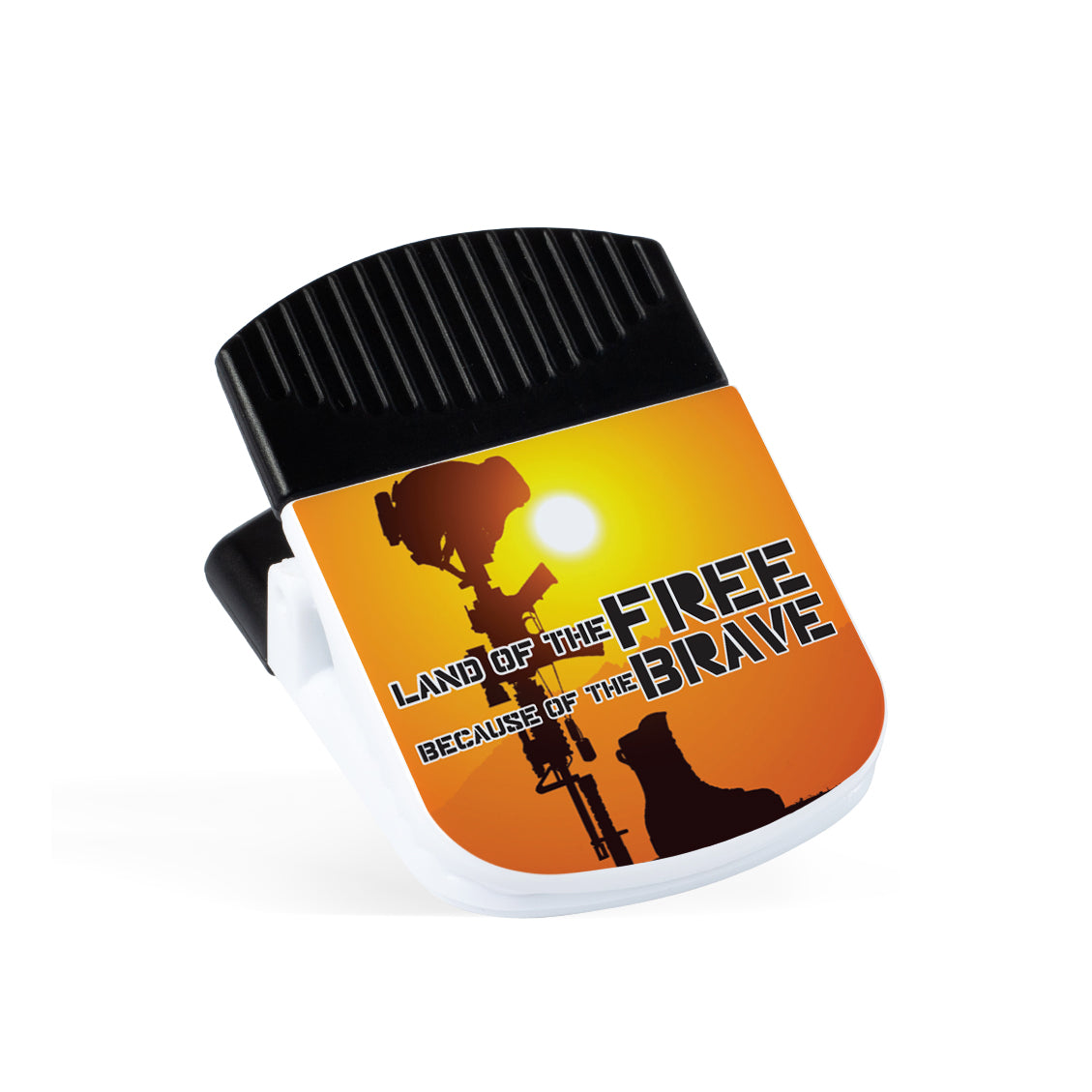 The magnetic clip is perfect as a chip or snack bags clip. It features a heavy-duty, spring-loaded hinge and a strong magnet on the back for added versatility. Imprinted, assembled, and packaged in the USA Product Size: 2L x 1.4W x 2.9H Standard Production Time: 5 business days upon credit approval. MSRP :  $4.89