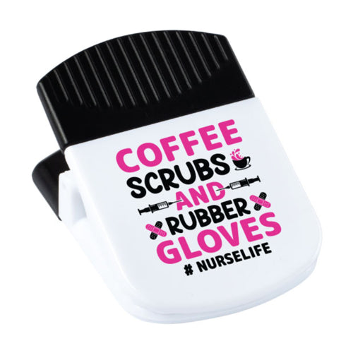 The magnetic clip is perfect as a chip or snack bags clip. It features a heavy-duty, spring-loaded hinge and a strong magnet on the back for added versatility. Imprinted, assembled, and packaged in the USA