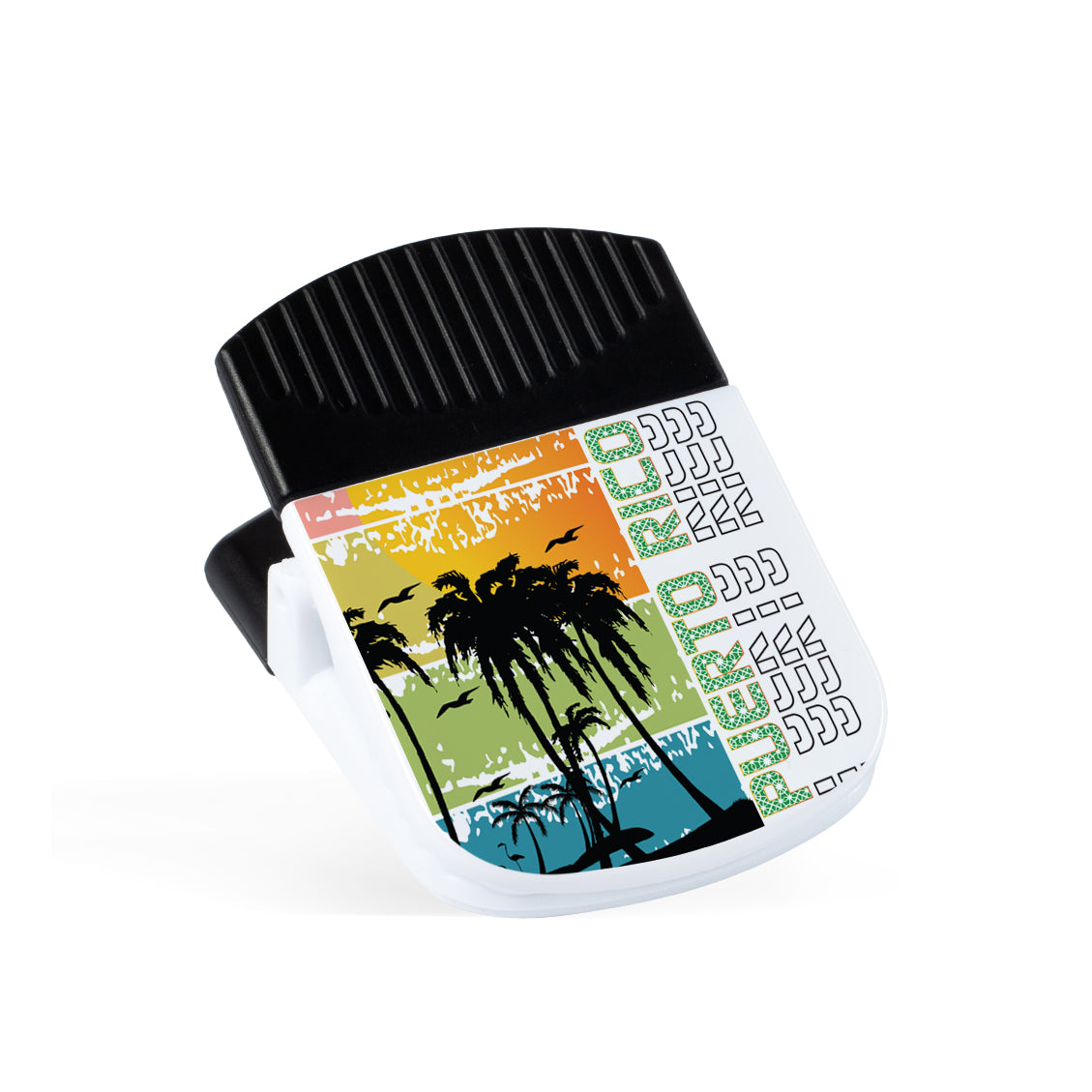 The magnetic clip is perfect as a chip or snack bags clip. It features a heavy-duty, spring-loaded hinge and a strong magnet on the back for added versatility. Imprinted, assembled, and packaged in the USA