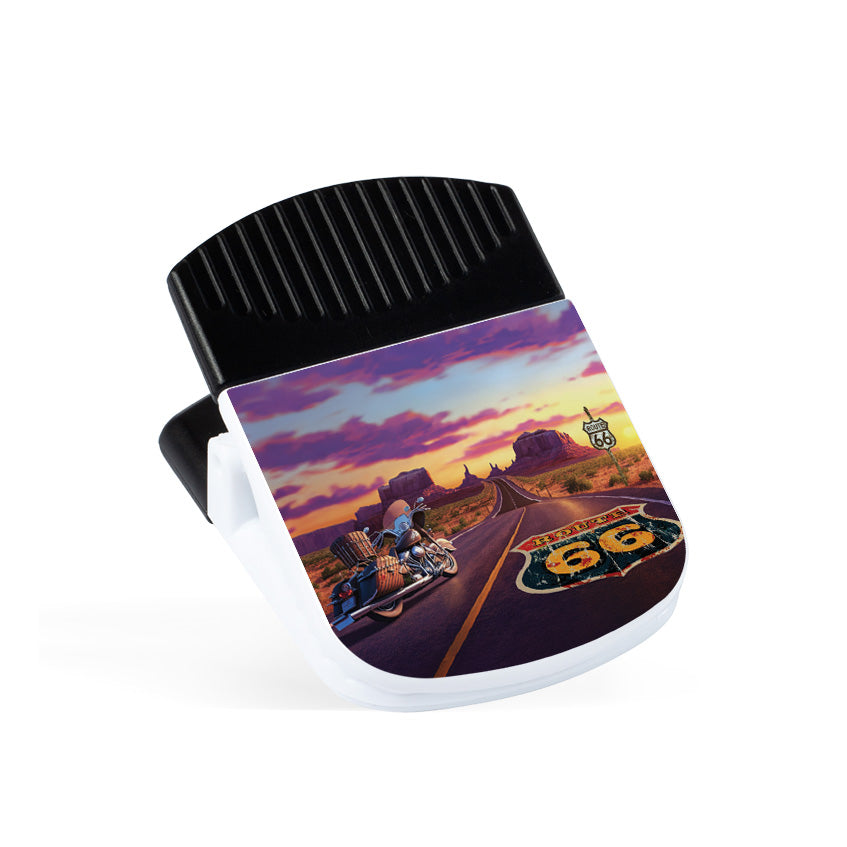 The magnetic clip is perfect as a chip or snack bags clip. It features a heavy-duty, spring-loaded hinge and a strong magnet on the back for added versatility. Imprinted, assembled, and packaged in the USA