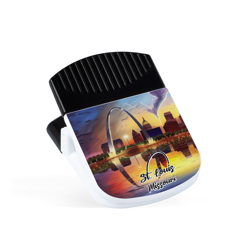 The magnetic clip is perfect as a chip or snack bags clip. It features a heavy-duty, spring-loaded hinge and a strong magnet on the back for added versatility. Imprinted, assembled, and packaged in the USA